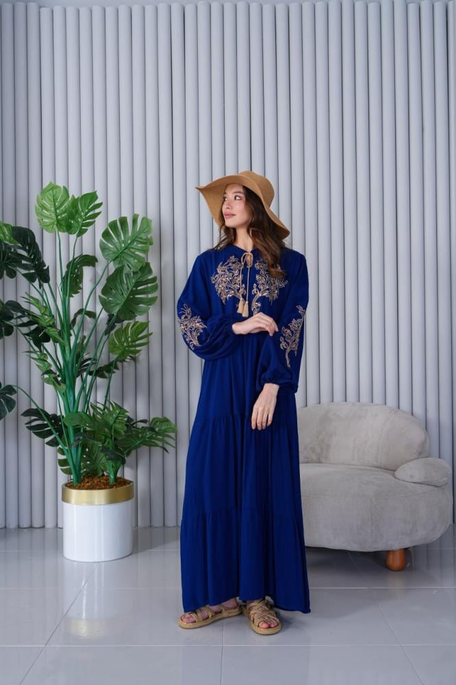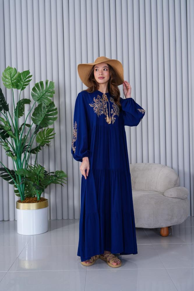 - الألوان: أزرق ملكي مع تطريز ذهبي.